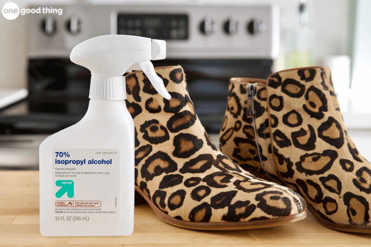Versez un peu d’alcool dans le pulvérisateur. Vaporisez l’intérieur des chaussures, sans les détremper. Enfilez-les aussitôt, puis marchez quelques minutes, le temps que la matière sèche et se détende. Si la gêne persiste, recommencez l’opération.